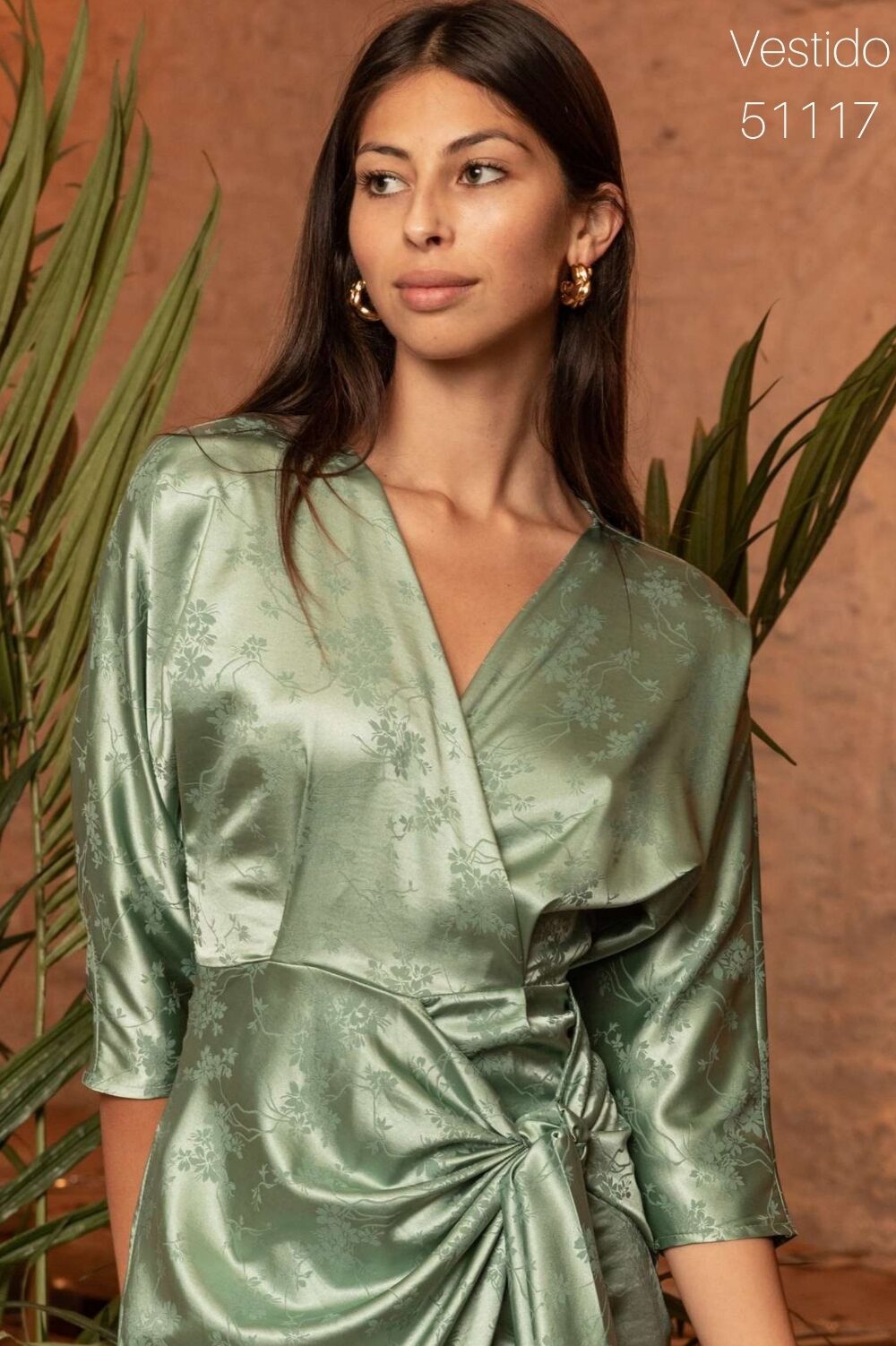 Vestido cruzado con lazada Tejido jacquard estampado