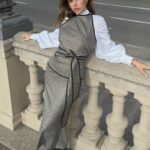 -30% 41,30 €59,00 €Vestido combinado negro y blanco con escote palabra de honor y doble volante