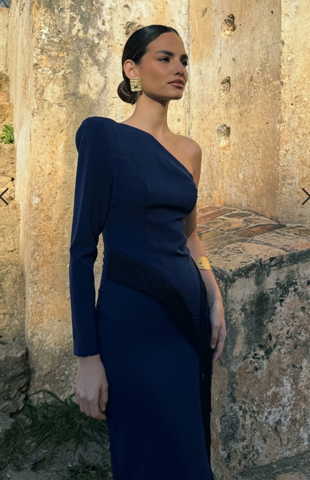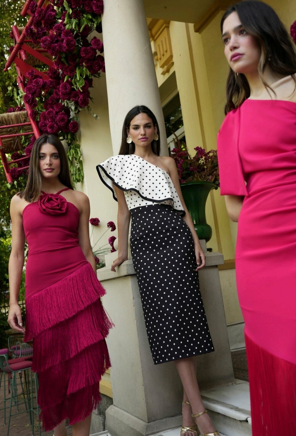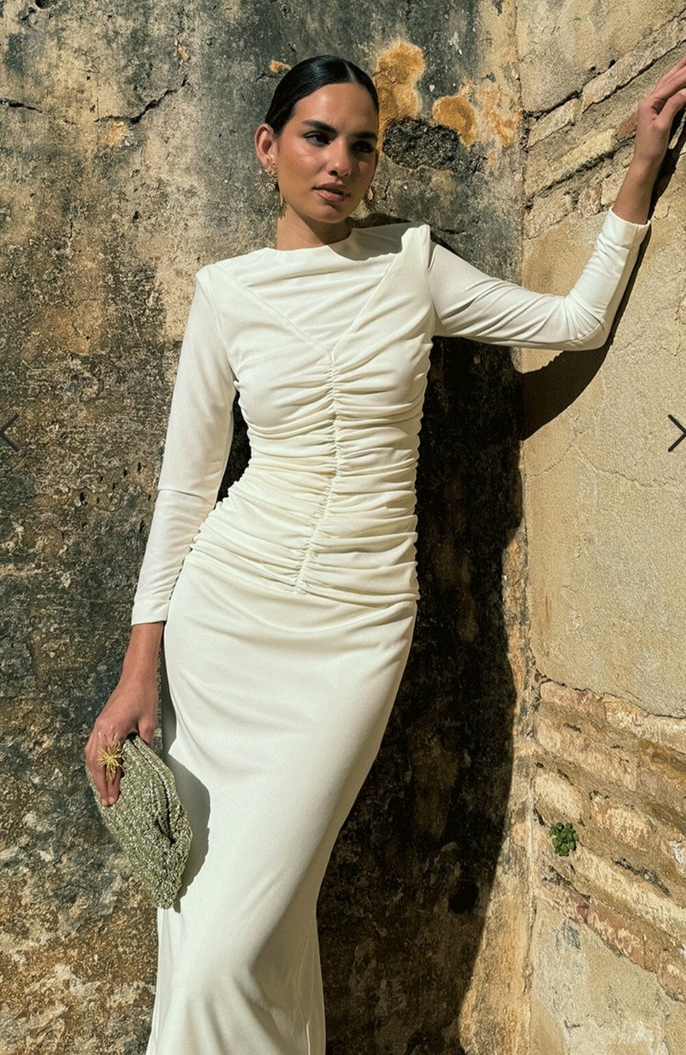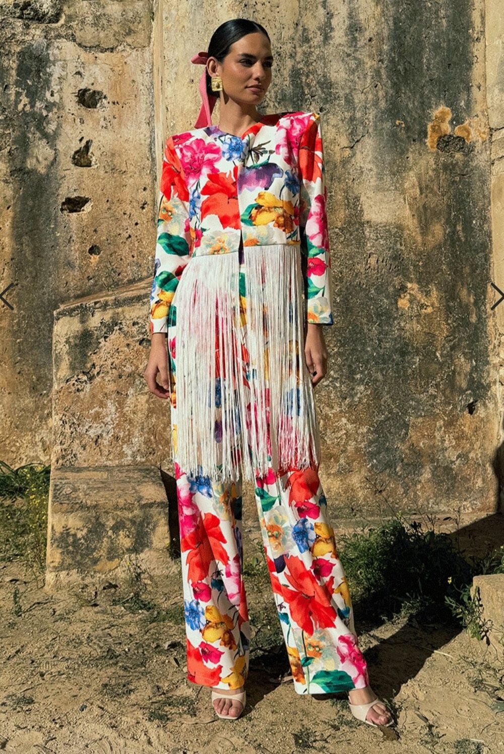 Conjunto compuesto por top de tirantes con escote corazón, frunce central y doble volante; y falda lápiz de largo midi con frunce central. Confeccionado en tejido de mezcla de lino